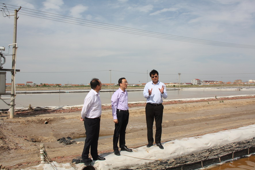 518日,集團公司總經理胡建明利用一整天的時間,就如何推進原料鹽基地建設,提升品種鹽市場競爭力,應對食鹽政策改革形勢,分別深入金橋制鹽公司的原料鹽儲存車間、徐圩投資公司的新灘及深港服務區、灌西投資公司的礦鹵日曬制鹽及柴門海鹽等生產現場進行了實地調研考察。在調研過程中,胡總詳細了解了從池內鹽工藝、扒鹽流程、原鹽運輸、到車間儲存等整個原料鹽輸送環節的情況,指出了存在的相關問題,并要求要根據鹽業市場發展情況,加強調研,科學謀劃有關方案,高規格推進海鹽原料鹽基地建設,為應對食鹽市場放開做好準備。胡總還調研了氯堿公司的安全環保工作。