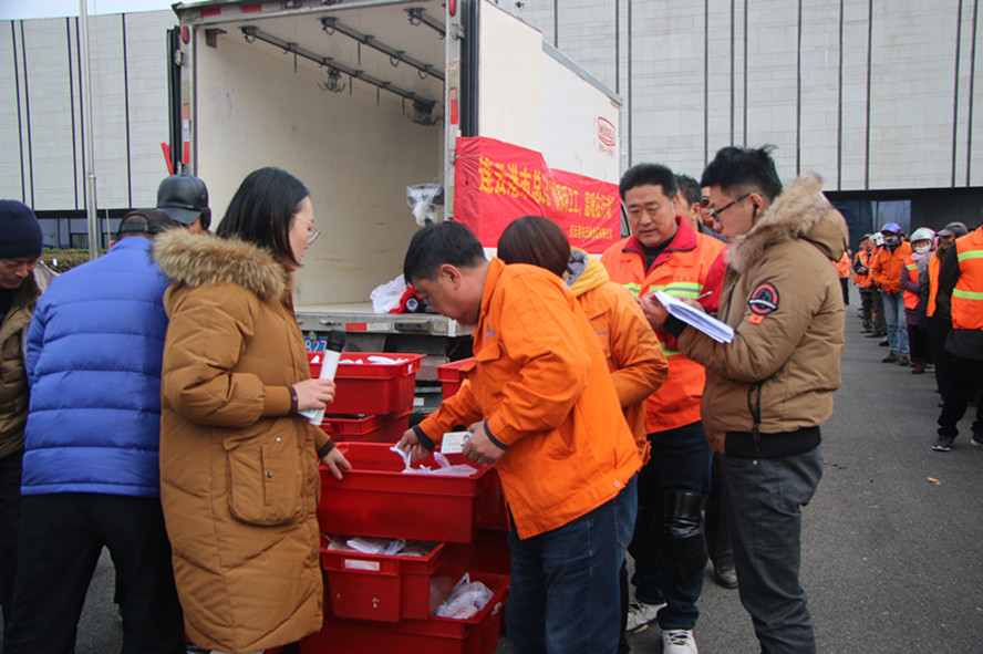 本次活動市總工會315名環衛工人發放了1400多斤豬肉,用真誠的行動帶給他們切實的溫暖。