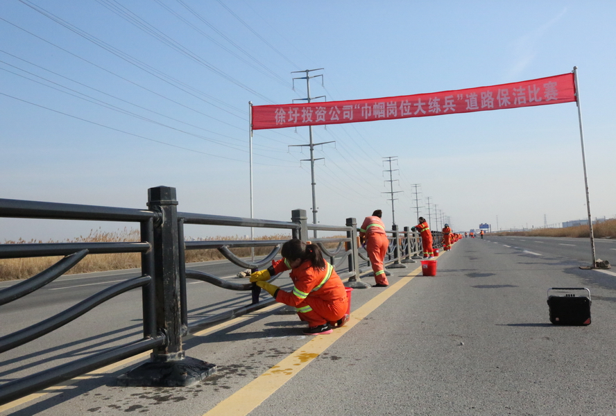 為慶祝“三八”國際婦女節成立109周年,提高女職工崗位建功水平,3月8日上午,徐圩投資公司在悅升公司道路保潔區域縱七路舉行“巾幗崗位大練兵”活動。40名女工參加了道路護欄正反面清洗比賽。最終,龔飛、任禮勤、胡連云、楊守平等女職工分獲一、二、三等獎。投資公司領導莊清付、梁永出席活動,并為獲獎女職工頒獎。