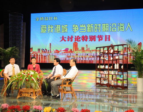在節(jié)目現(xiàn)場, 顧永庚董事長首先為大家展示了集團(tuán)公司化工和加工鹽等各種特色產(chǎn)品。其后,顧永庚董事長介紹了集團(tuán)公司在江蘇沿海開發(fā)戰(zhàn)略實(shí)施兩年來所取得的輝煌成就,圍繞沿海開發(fā)過程中金橋鹽化具有的獨(dú)特區(qū)域和資源優(yōu)勢、“十二五”發(fā)展目標(biāo)定位、“創(chuàng)建名牌企業(yè),共架幸福金橋”的奮斗目標(biāo)等方面與嘉賓、觀眾進(jìn)行了深入探討。
