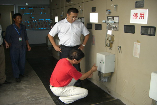 8月31日,公司領導帶領相關人員深入基層單位進行安全檢查,并現場查處安全隱患。圖為黨委書記、總經理范益寶在臺南供電所督導安全生產工作。(朱兵、徐磊)