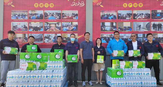 6月8日上午,我公司工會開展夏季“送清涼”活動,公司黨委副書記、工會主席曹開明為各車間單位分配鹽汽水、綠茶和茶葉等防暑降溫物品。
