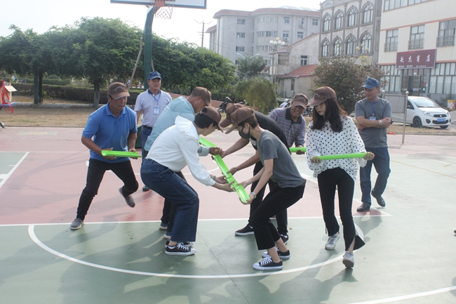 ? ? 25日在籃球場開展了團建游戲活動,游戲由輔路搭橋、積少成多、三人兩足、摸著石頭過河等小游戲組成。近50名隊員現場分組,每組選出一名隊長,并喊出自己的口號。在整個活動中職工們熱情高漲,“輔路搭橋”及“三人兩足”兩個游戲都需要全體隊員團結協作才能完成,隊員們配合默契、齊心協力到達終點;而“摸著石頭過河”是大家之前都沒有玩過的游戲,有的隊員笨拙的挪動引的圍觀者捧腹大笑,現場不時響起加油聲、歡笑聲,熱鬧非凡。