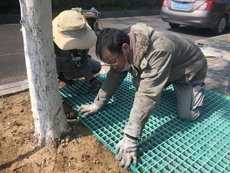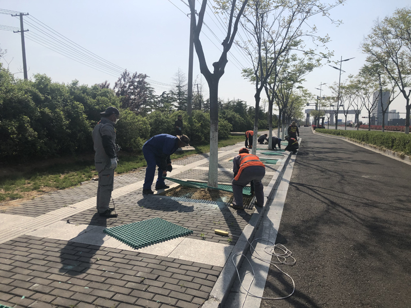 本次志愿奉獻活動內容是對黃海大道兩側樹池進行隔柵安裝工程。在接到華茂公司的工程項目后,得知要在3天之內對300座樹池進行作業,各班組在辦公群了解到此項目的工期緊且工程量大時,自發組織了一場志愿奉獻活動。第二天早晨8點,26人的身影出現在了黃海大道,炎炎烈日下,我們分成4個小組,有的手握鐵鍬進行填土、有的負責投放隔柵、有的手拿切割器進行切割、有的進行安裝作業,分工明確、井然有序,充分發揚了“四拼”工作作風。